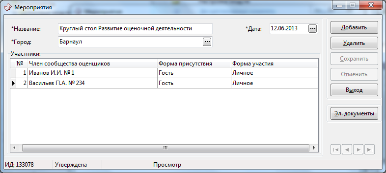 В дальнейшем, все события, в которых будет задействован данный участник, отображаются в спецификации соответствующего реестра.